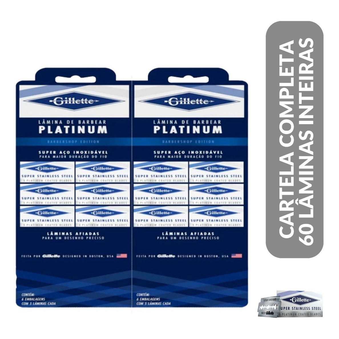 Lançamento no Brasil as Lâmina de Barbear Gillette Platinum Original Super Aço inoxidável, Para maior Duração do Fio.